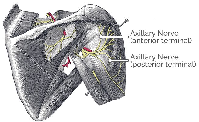 Rolul nervului axilar: Nervul axilar este responsabil pentru innervarea deltoidului, mușchiul principal în flexia umărului. Deltoidul, în special partea sa anterioară, este esențial pentru ridicarea brațului înainte de corp. Nervul axilar provine din plexul brahial, având rădăcinile nervoase C5 și C6, care sunt implicate direct în mișcarea de flexie a umărului.